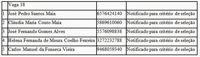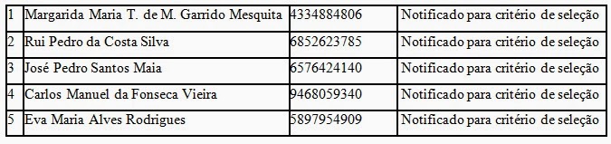 132/2012, divulga-se a lista dos cinco primeiros candidatos que integram a 1ª